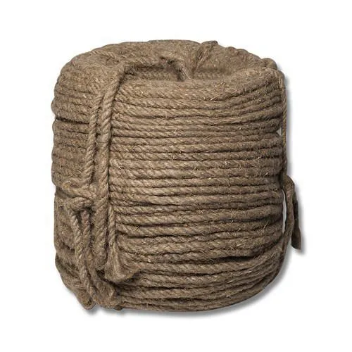 Продукция вырабатывается из короткого льняного волокна низких номеров 2, 3, 4. Имеет трехпрядную структуру. В зависимости от диаметра, каждая прядь может состоять из заданного количества каболок от 30 до 1. Льняные веревки – изделия исключительно хозяйственного назначение. Используются для перемещений и фиксации неответственных грузов. Льняные веревки гигроскопичны, обладают не высокой биостойкостью. По этой причине их рекомендуется использовать в закрытых помещениях с умеренной влажностью.
